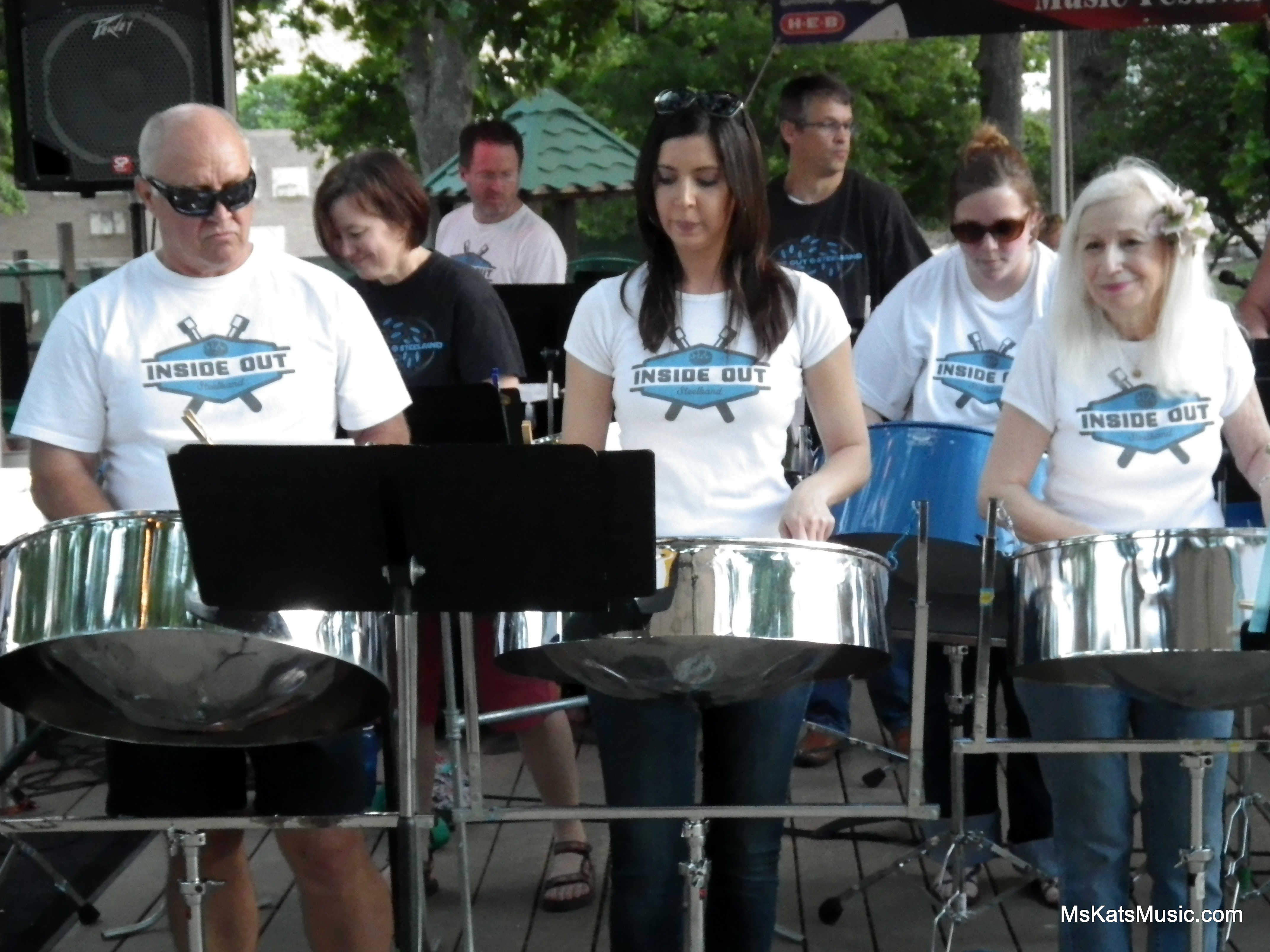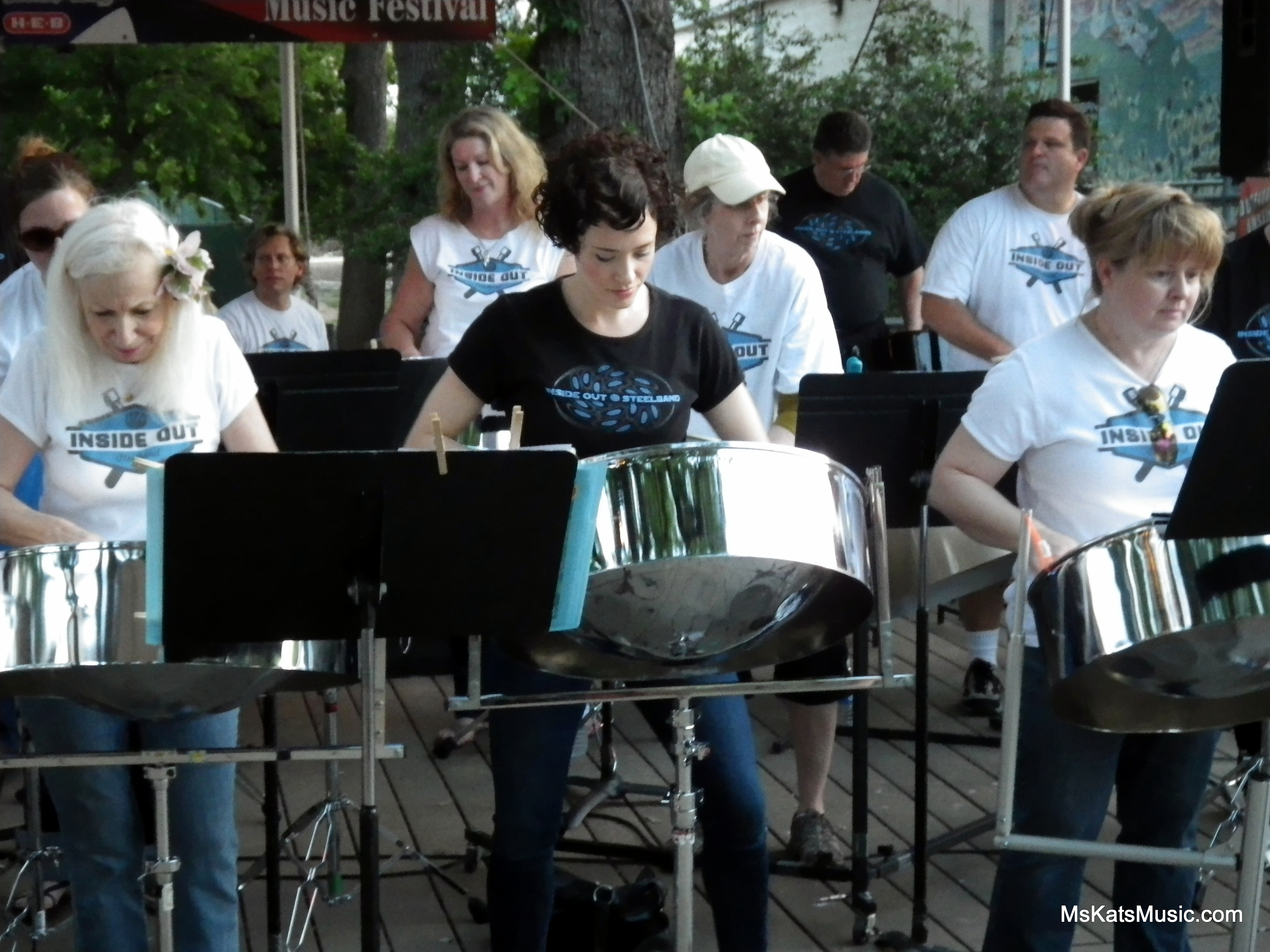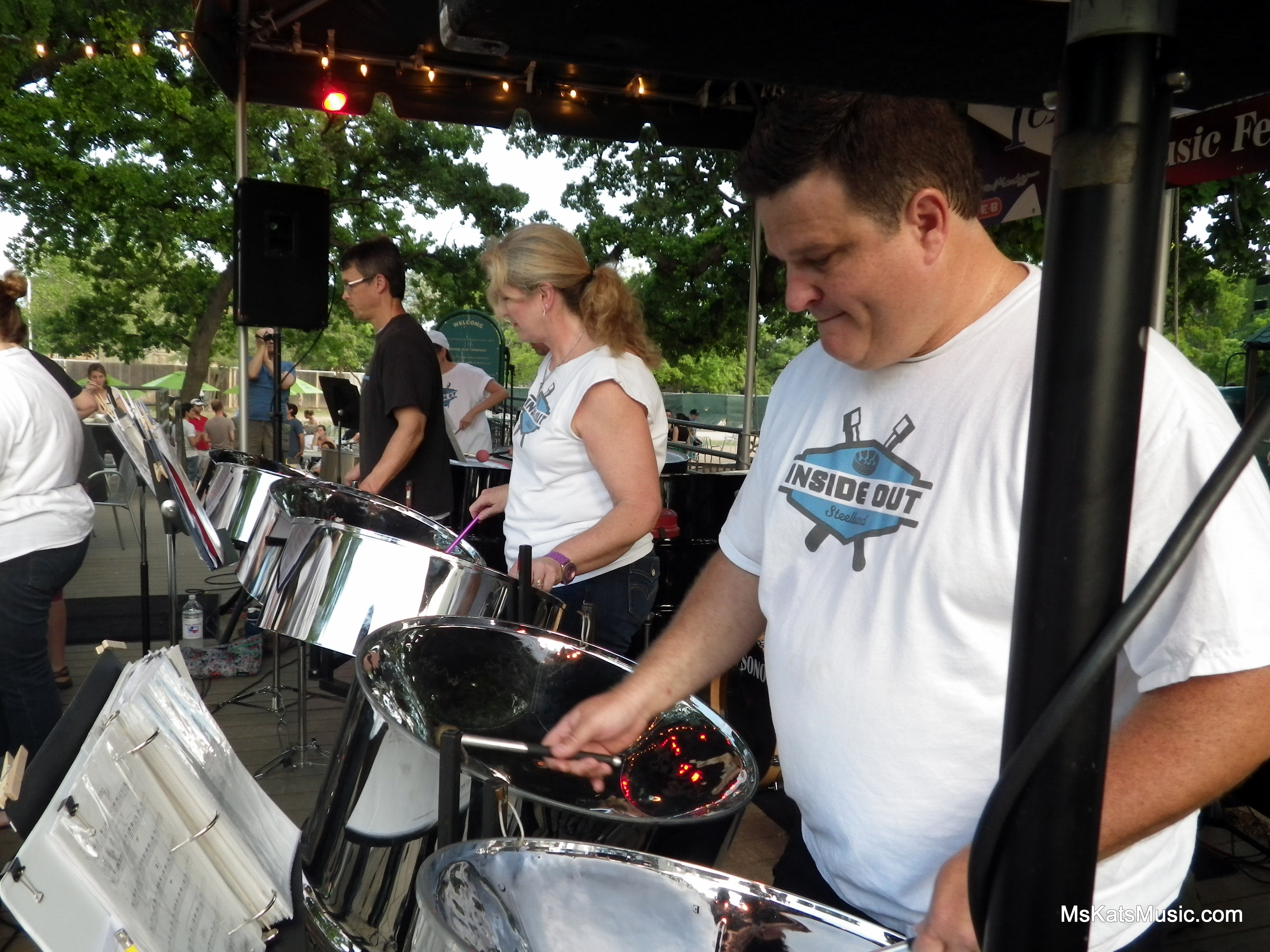 Next up was a group that was almost as impressive to watch set up and tear down as they were to hear perform! A moving truck pulled up in front of the cafe packed stem to stern with steel drums! After we cleared the deck of wee-ones, they set up in about 15 minutes flat, and the Inside Out Steel Band started up and we were off to the islands, mon!