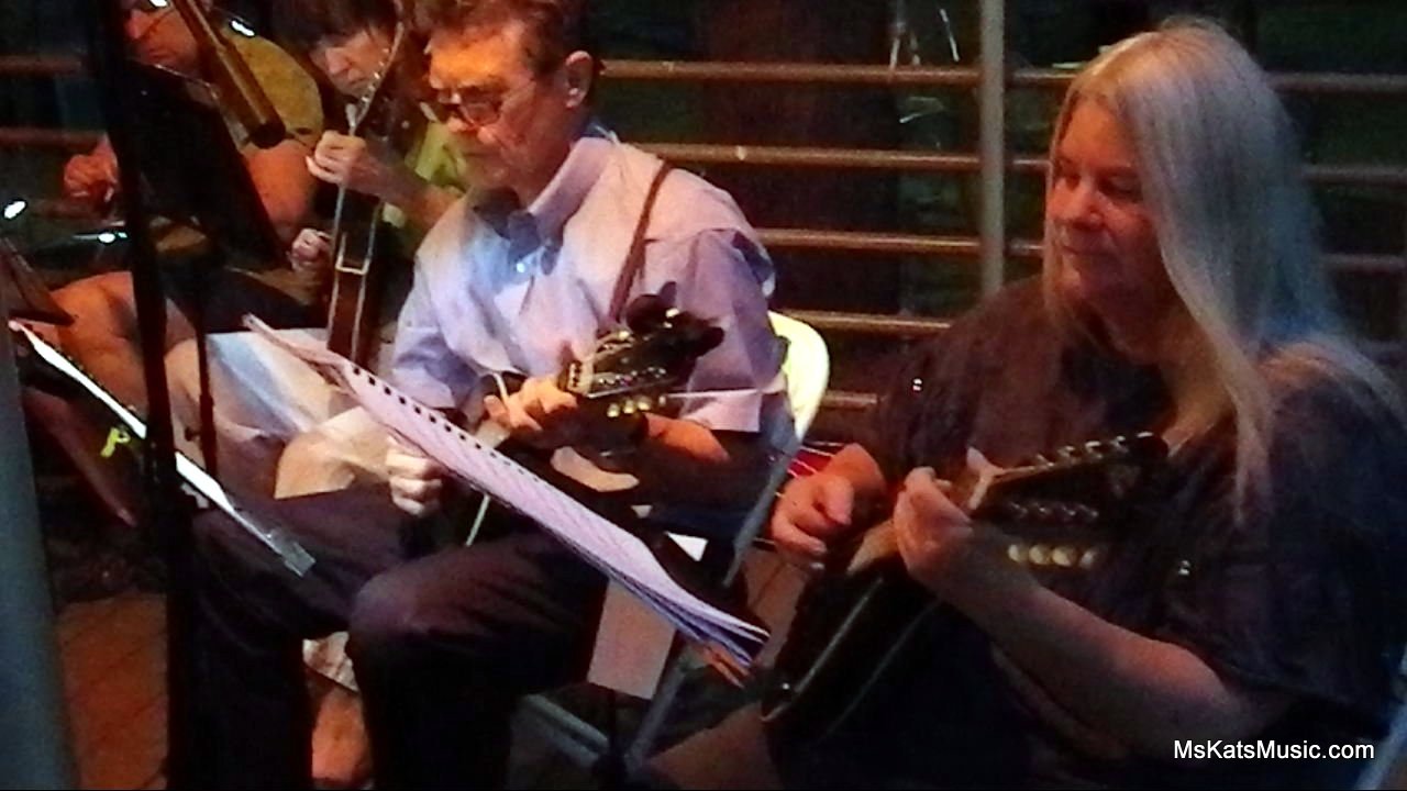 15 instruments, including a guitar and a mando-cello (a tenor instrument that combines, you-guessed-it, a mandolin and a cello) and their sound was so quiet, so tentative, so tender. The patio was packed, but the patio was silent. Spellbound. It was a perfect end to the evening. Listen closely.